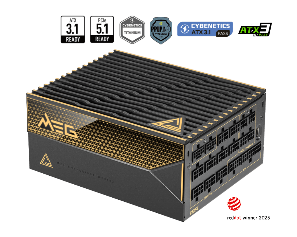 FUENTE DE PODER MSI MEG Ai1600T PCIE5 - 1600 WATTS - 80 PLUS TITANIUM - MODULAR